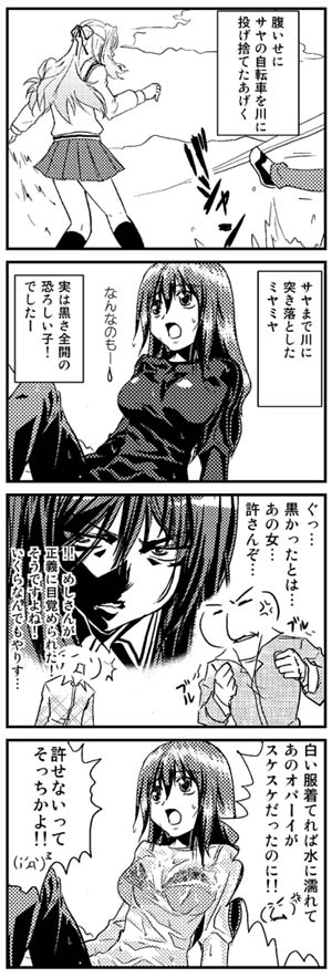 黒 (バンブーブレード3話より) 黒い服だからこそオパーイが強調されたのかもしれませんよ バンブーブレードからですね。 原作もつい一気に読んじゃいましたよ(;´Д`)ハァハァ う…やば…ちょっと一時的かもしれませんがハマってきたかも。アキラが出てるから見てたハズだっと思ってたけどこれは…ドキドキ。 テレ東系とかのアニメ作品は一部地域の人しか見られない(はず)なので、他の方が置いてけぼりになるからできるだけサイトは漫画作品達をメインにって思ってましたが…ごめんなさいよぅ でもほら、最近はいろいろと見る方法(ry なんかそう言う意味では善し悪しは分かりませんが日本の地域差はなくなってるのかなぁと思った今日この頃。 PR |